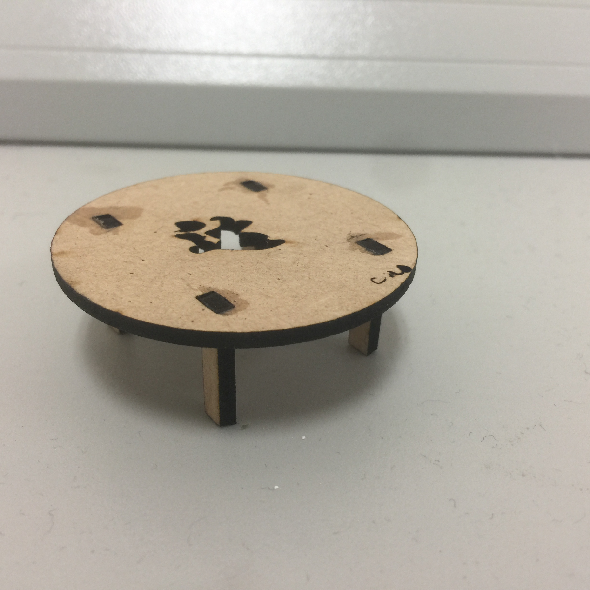 制作过程:利用犀牛软件做出桌子需要的桌面和桌腿,然后在上面写上我的名字。用激光切割机进行切割。