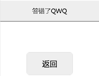 当点击错误答案时跳转到错误界面,点击正确答案后跳转到正确界面,并且得分加一,二者均可返回当前界面:
